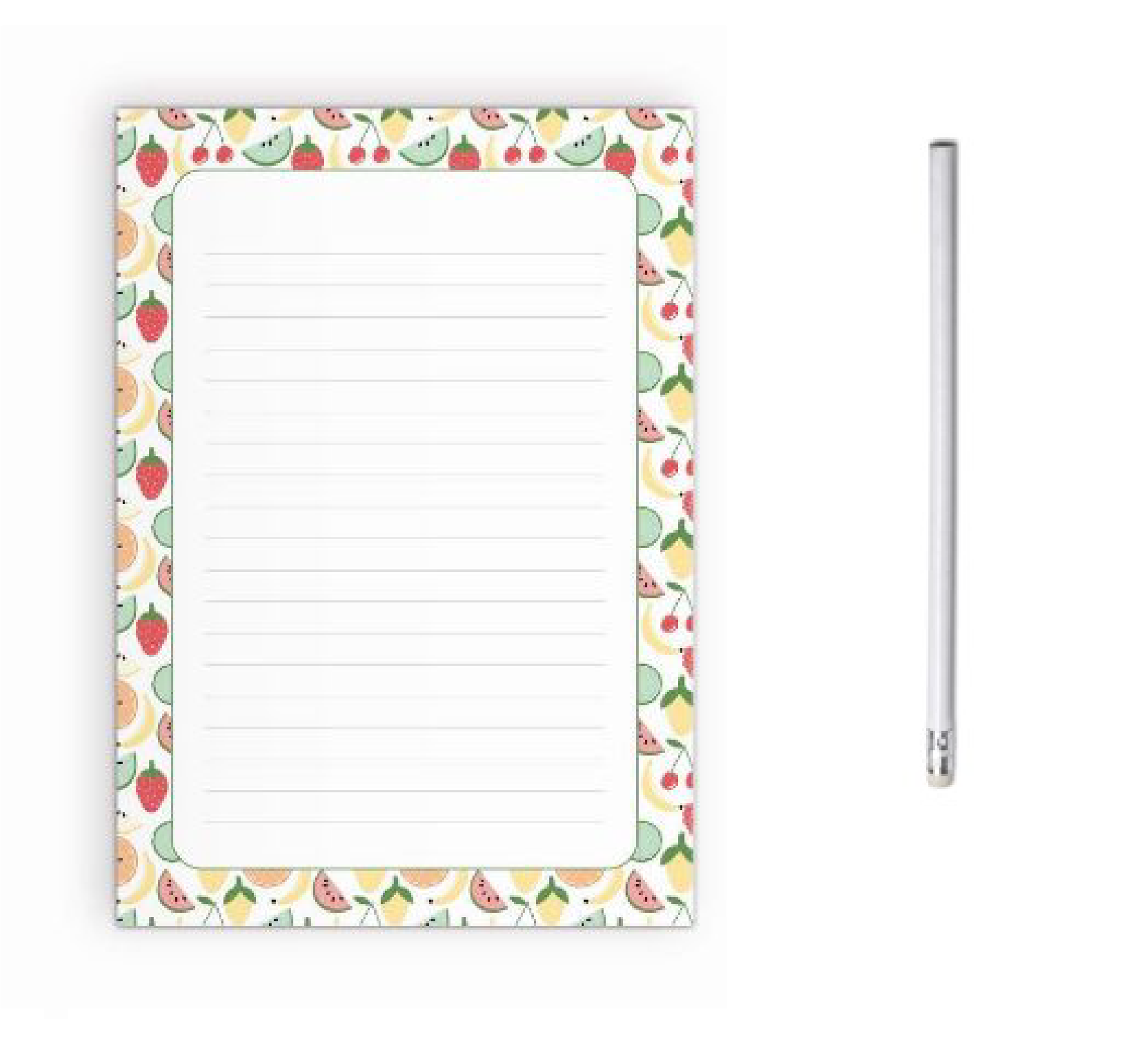 Handige notitieblok met fruit print! Leuk om te geven als cadeautje of gewoon zomaar. De blok heeft 50 blaadjes.